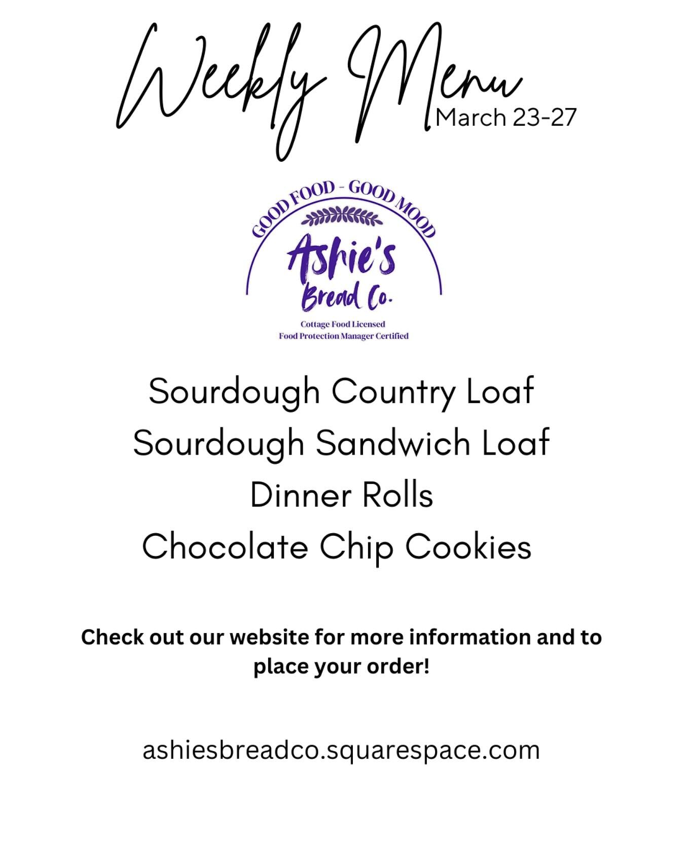 Ashie’s Bread Co. is a home-based cottage food licensed bakery producing artisanal, handmade breads & pastries using traditional baking techniques.